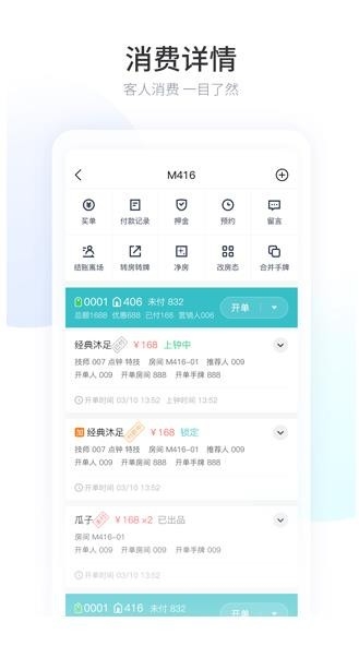 2、消费详情,客人消费一目了然