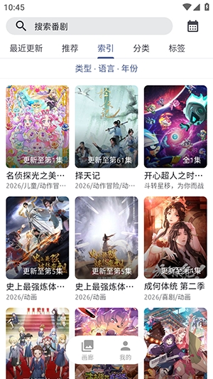 4、索引搜索功能:支持按类型、年份、评分等方式查找动画资源,快速找到想要的歌剧。