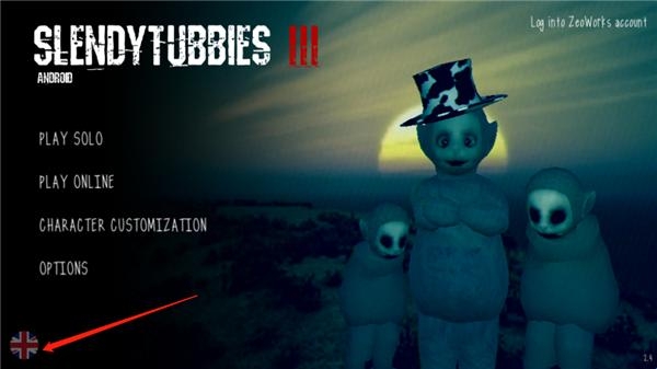 1、进入游戏首页,我们可以看到是英文的,点击左下角的国旗;