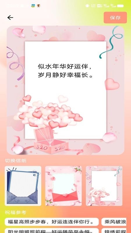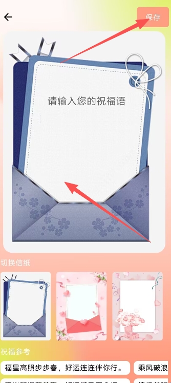 2、用户在文字框中输入祝福语并选择信纸样式后点击保存即可。