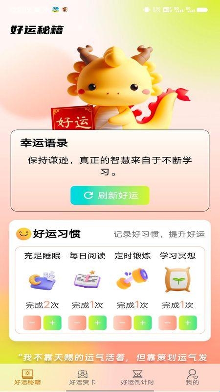 瑞龙好运app是一款可以让用户获得幸福感的软件,在这里,用户可以获得一份专属于你的好运祝福,帮助你开启元气满满的一天。软件也设置了电子好运签和祝福卡片,可以让用户将这份温暖分享给自己的家人或好友,并且用户也可以自己选择主题背景和祝福音效,喜欢的朋友们快来下载体验吧。