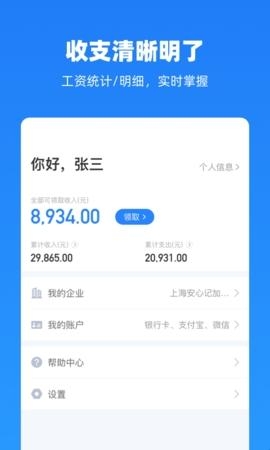 企业上传发薪名单,员工通过云人事app立即领取工资,提到卡或支付宝。