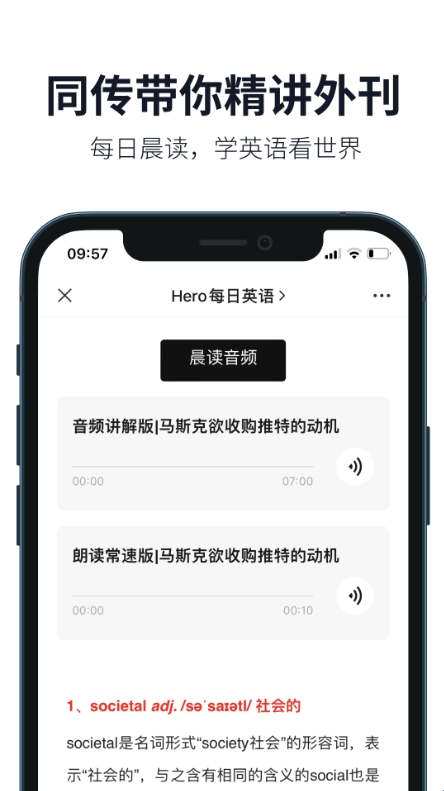 2、同传Hero带大家每日晨读,精讲国内外新闻,学英语看世界。
