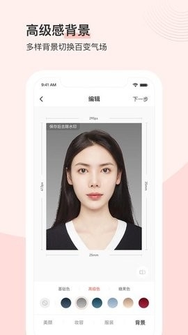 1.通过点击“背景”,一键智能优化各种复杂背景,去除背景杂物,拥有一个完美的证件照背景。