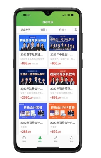 4.进入班级版块,查看各个班级题库信息,选择更适合自己的进行购买