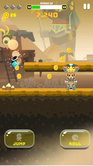 1、操作非常的简单,你只需操控两个按钮就行了,角色会自动向前奔跑。