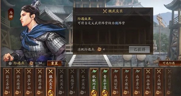 自定义武将可通过消耗际遇点的方式获取际遇效果,跟自定义武将本身的能力息息相关,可用于更多的阵容搭配维度。部分际遇会随游戏进程逐步获得。