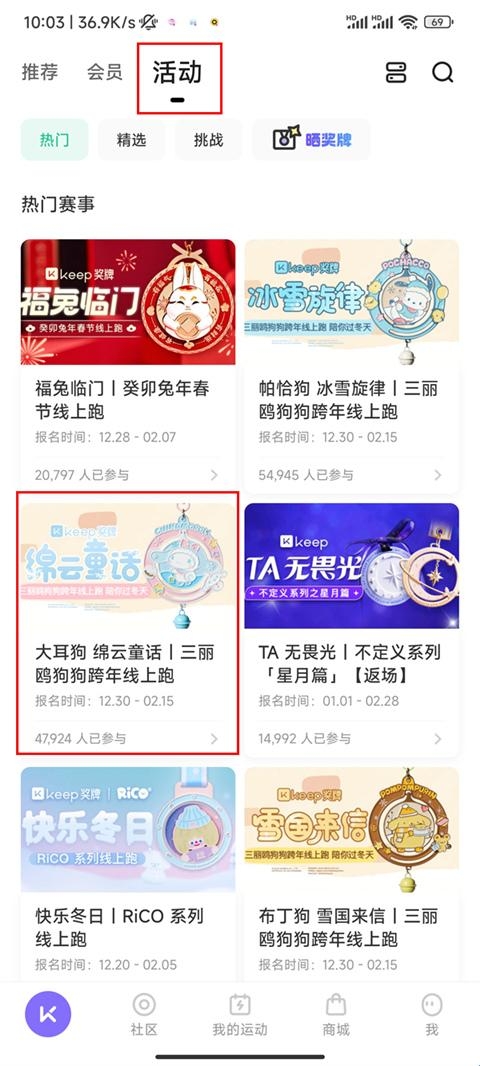 1、打开keep,点击活动,找到并点击进入需要参加的活动。