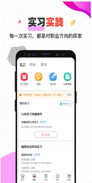 校友邦是一款手机端在线教育平台,如果你正在为实习问题而烦恼,或者是对未来生涯规划感到迷茫时,那就来试一试校友邦APP。在这里不仅会给用户带来海量实习实践外,还有求职招聘为你服务,让你实习问题轻松解决。同时对于比较迷茫的小伙伴来说,也涵盖了名师指导和求职干货为,帮你实时规划你的职业方向。