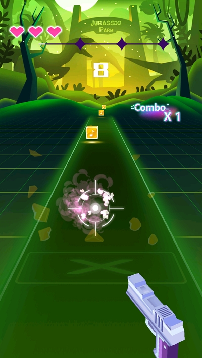 3、将准星对准陆续迎面而来的音符即可将它们消除,