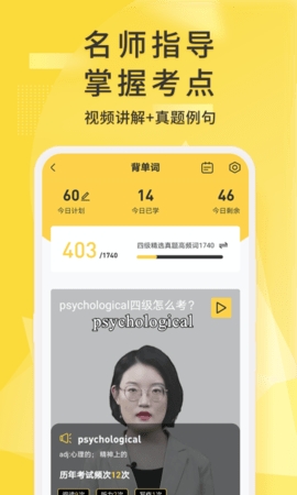 英语四级君是一款专为大学生提供的英语四级考试学习软件,支持英语四级学习视频,词库,做题等功能,内容方面涵盖了英语四级词汇,语法,听力,阅读,写作,翻译等全部题型,是学习英语的用户必备的手机app。有了英语四级君,再也不用担心四级考试该从哪里着手复习,让你的英语水平得到较快的提升。快来下载使用吧!