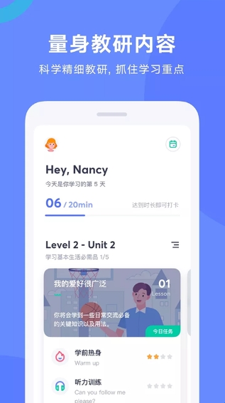 1、它会根据用户不同的英语等级,为他们推荐量身定制的学习内容;