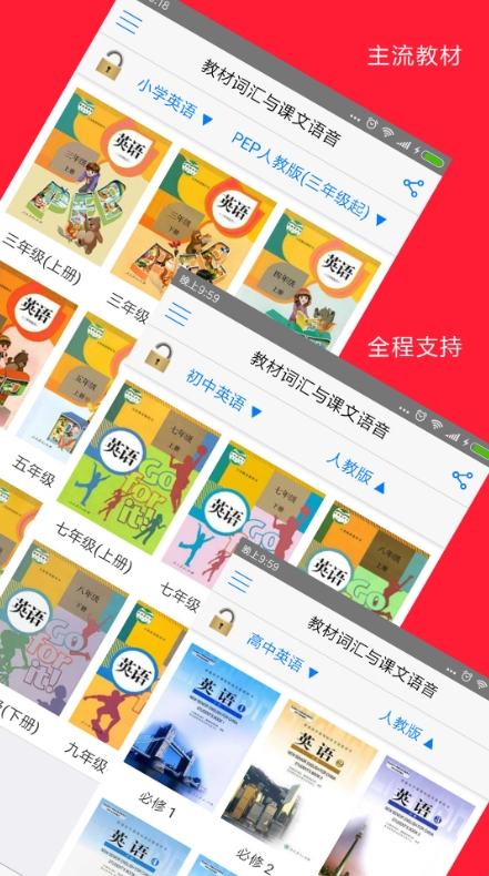 4.釆用选进的流布局设计,学习者可以根据自已量身定制和下载教材词汇和课文语音