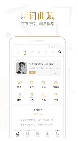 典读app是由北京云趣纵横科技有限公司打造的一款设计优雅、内容全面的经典文学阅读及听书软件,该软件内收录了数百万古今中外的经典文学,如名言金句、诗词曲赋、名著典籍、美文典故,还有诸多国外经典名著等,将五千年沉淀的不同体裁的诗词全收录,包括古诗、楚辞、唐诗、宋词、元曲、近代诗歌,再以题材、选集、手法、风格等十多个不同维度进行归类,涵盖了数百个分类,近百万首诗词。不仅如此,典读还将从历史典故、名人典故、文学典故、成语典故等近万个典故带你追本溯源,系统了解流传至今的古代故事和有来历的词语,并且成语有具体的含义、出处、典故、用法等内容,为你及时解读。对于积累了这么多从古至今的文学作品软件,可谓非常的强大,那么赋有文化气息的你可不要错过了,快来沉浸在这文学世界中吧。