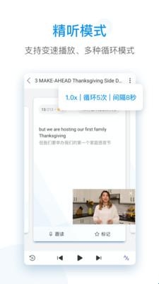 -播放调节:8档语速调节、4种循环模式,单句精听、听写、测验,满足不同阶段学习需求;