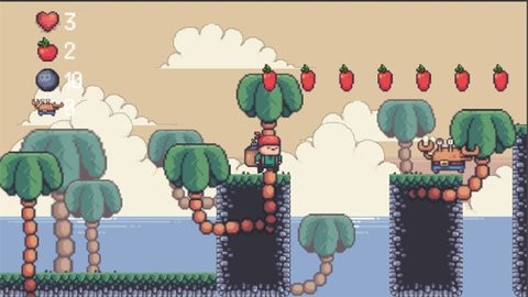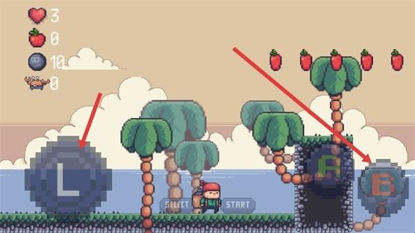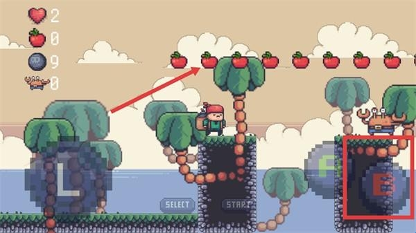 3、在平台上,点击B键即可操纵角色跳跃收集苹果。